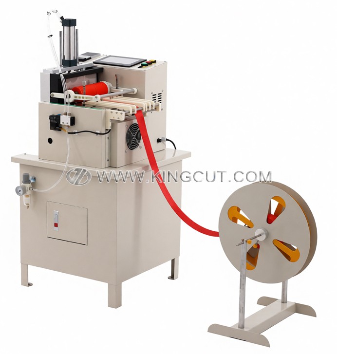 设备的显著优势在于其集成了冷热双切割功能,操作人员可根据具体材料特性灵活选择加工模式。热刀模式主要用于易散边的合成纤维材料,通过瞬间的高温熔切工艺,在切割的同时对织带边缘进行自动热熔封边,确保成品切口平整、耐用且不脱线。而冷刀模式则针对无需热封的材料提供极速裁切方案,这种“一机两用”的柔性化配置,使得工厂仅需一台设备即可轻松应对多样化的订单加工需求。