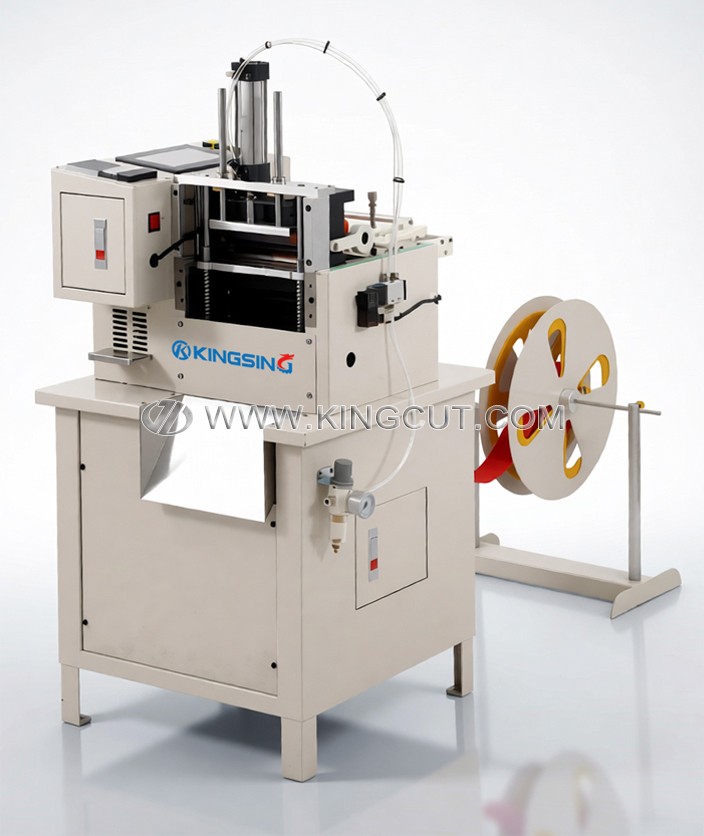 设备的显著优势在于其集成了冷热双切割功能,操作人员可根据具体材料特性灵活选择加工模式。热刀模式主要用于易散边的合成纤维材料,通过瞬间的高温熔切工艺,在切割的同时对织带边缘进行自动热熔封边,确保成品切口平整、耐用且不脱线。而冷刀模式则针对无需热封的材料提供极速裁切方案,这种“一机两用”的柔性化配置,使得工厂仅需一台设备即可轻松应对多样化的订单加工需求。